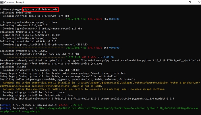 If you need Frida to get open from any location, copy the above path into the environment variable.